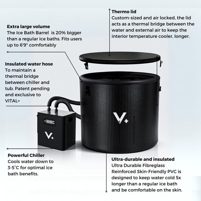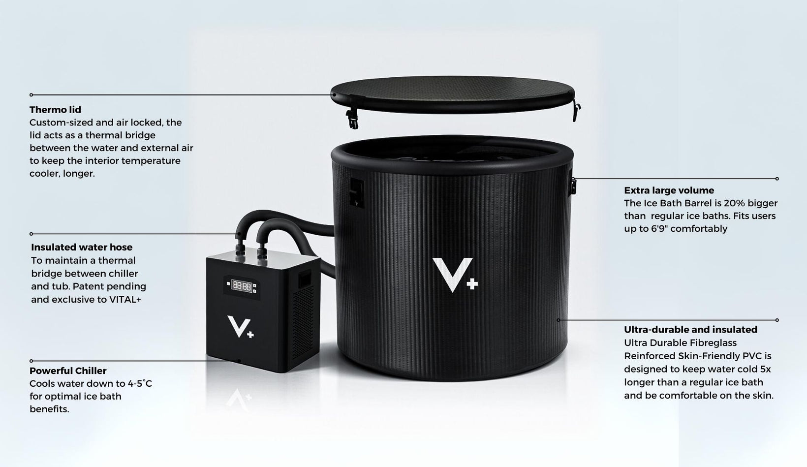 The insulated hoses ensures that your ice bath exposure to external heat is minimized. The entire set up is fully insultated - between the Ice Tub, hoses and Chiller unit - What makes the VITAL+ chiller different?